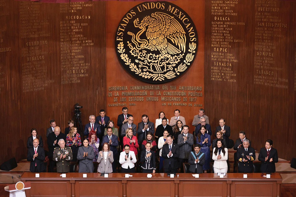 El mandatario estatal acompañó a la presidenta de la Nación, junto con las demás gobernadoras y gobernadores, los representes de las dos Cámaras del Congreso de la Unión, el presidente de la Suprema Corte de Justicia de la Nación, así como secretarios del gabinete federal, en el escenario de este histórico recinto, el mismo en el que hace 109 años el Constituyente firmó la carta magna que rige la vida política del país.