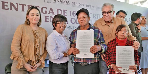 Familias vecinas de El Ranchito reciben las escrituras de sus viviendas por parte del gobernador Rocha Moya